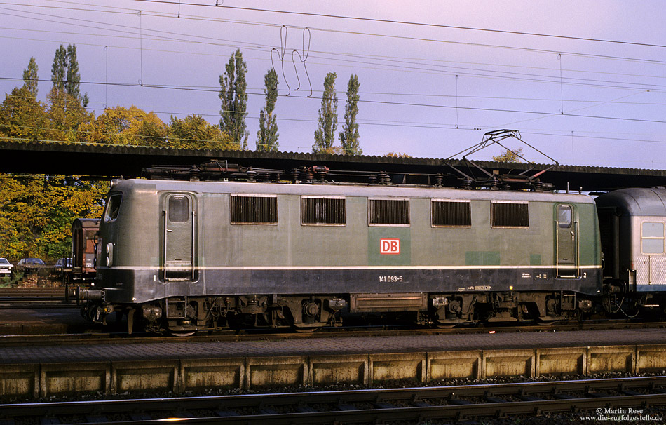 | Am 2.10.1996 präsentierte sich die Frankfurter 141 092 in Gießen mit grauem Dach und teilweise umlaufende Regenrinne. | |