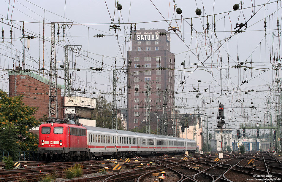 | Am 3.9.2010 musste die 110 236 für eine defekte 101 einspringen und den IC331 von Koblenz nach Emden fahren. Fotografiert bei der Einfahrt in Köln Hbf. | |