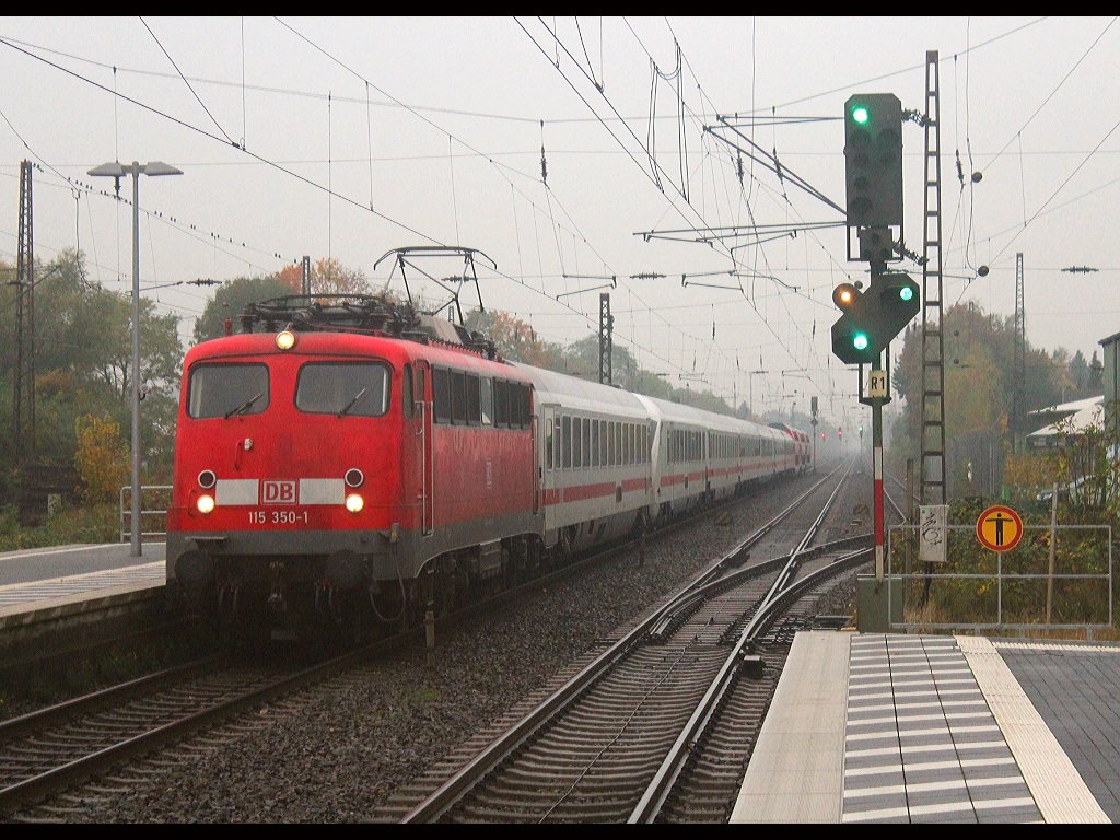 | Am 28. Oktober 2016 durchfuhr die 115 350-1 der DB Fernverkehr AG den Bahnhof Kamen zwischen Dortmund Hbf und Hamm in Westfalen. Mit dem Lr/PbZ 2477 am Haken ging es vom Dortmunder Betriebsbahnhof in Richtung Kassel. |