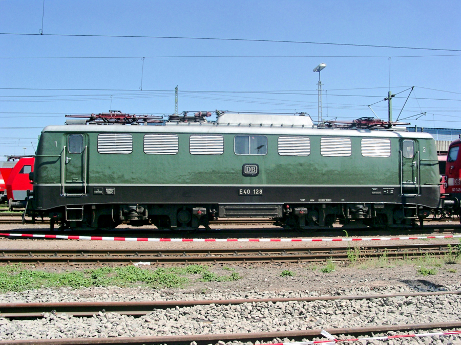 wieder in ihren Ursprungszustand als E 40 128 zurückversetzt, aber noch nicht durch das DB-Museum Koblenz-Lützel übernommen. Die Aufnahme entstand am 28.07.2000 im Bw. Mannheim