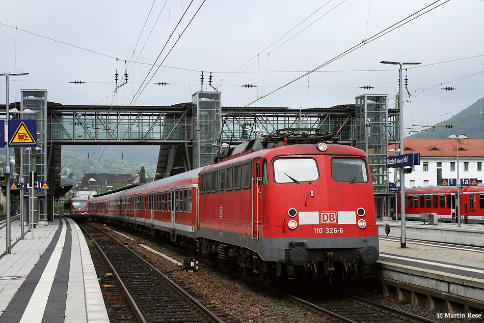 | Der direkte Weg von Koblenz nach Mannheim führt über Mainz und Worms. Der RE 4093 verkehrt jedoch planmäßig über Trier und Saarbrücken, mit einem Umweg von 169km! In Neustadt (Weinstraße) hat die 110 326 mit dem RE 4093 den Großteil der 331km langen Strecke hinter sich gelassen. |