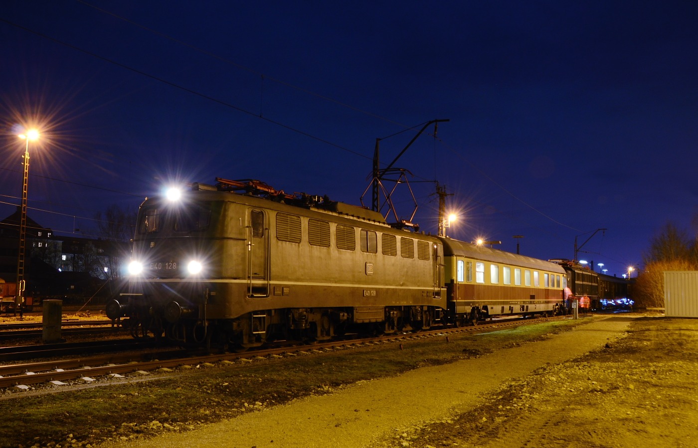| E40 128 am 28.02.2015 in Augsburg. Sie überführte an diesem Tag E91 99 von Augsburg nach Nürnberg Rbf. | |