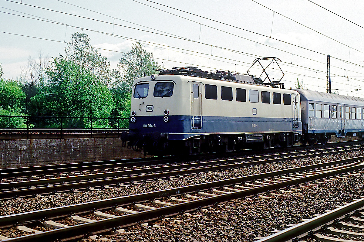am 26.04.1992 mit einem Nahverkehrszug in Höhe Mannheim-Friedrichsfeld auf der Fahrt von Heidelberg nach Mannheim Hbf.