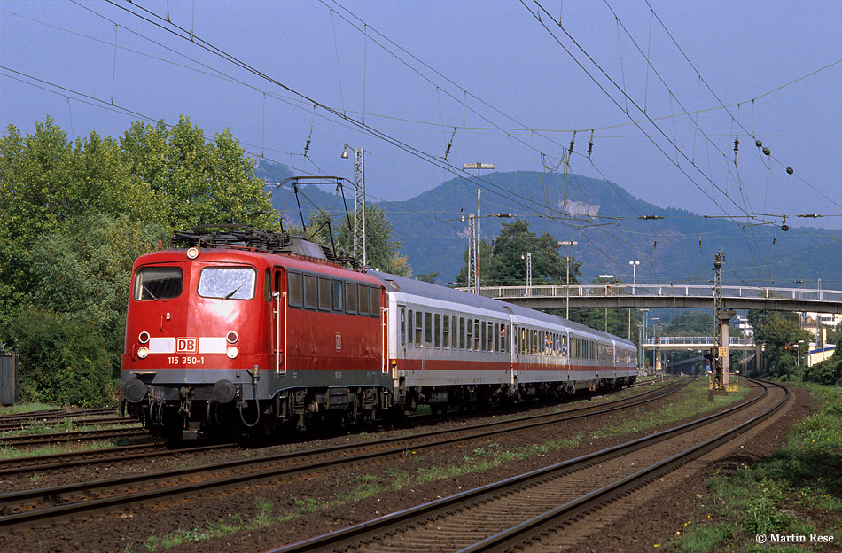 | Am 29.9.2006 war zwischen Bad Honnef und Unkel wegen Bauarbeiten nur eingleisige Betrieb möglich. Aus diesem Grund musste der, mit der 115 350 bespannte, "Säuferzug" D1925 (Dortmund - Trier) in Bad Honnef die Durchfahrt eines entgegen kommenden Zuges abwarten. | |