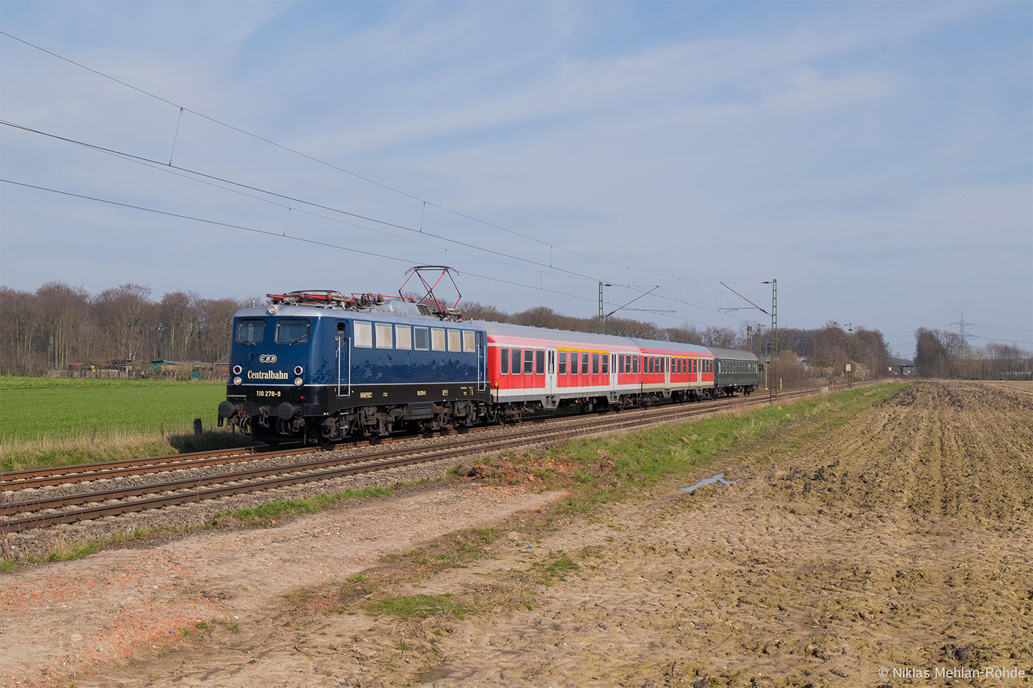der Centralbahn, drei Centralbahn-Wagen von der Fußpflege in Düsseldorf ab und zog sie bei Anrath flott in Richtung Heimat!