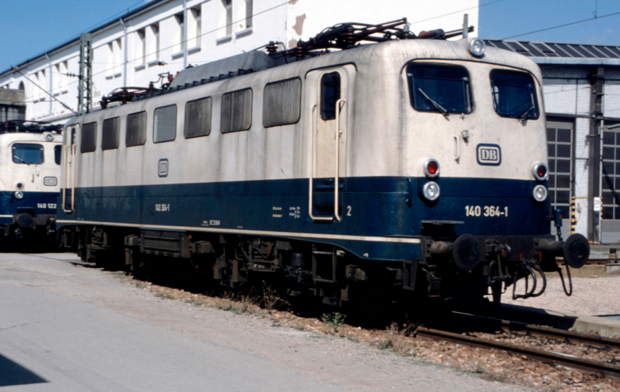 | Bis zu ihrer Ausmusterung im Jahre 2002 trug die am 09.06.1992 im Bw. Mannheim fotografierte 140 364 die blau/beige Lackierung. | |
