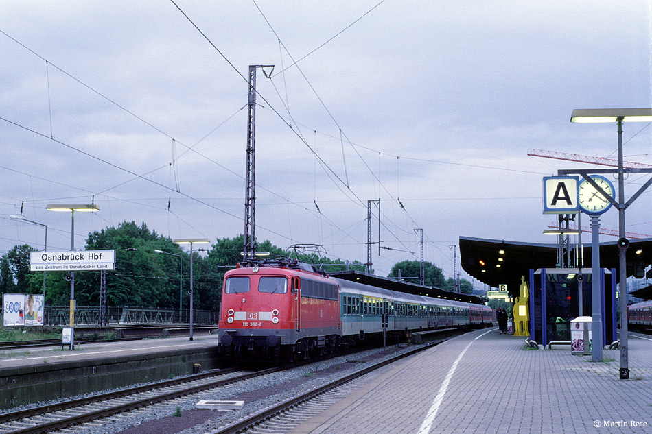 mit dem RE24172 nach Bremen Hbf in Osnabrück auf die nahende Abfahrtzeit. 12.9.2001