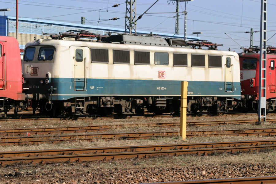 | Kurz vor ihrer Ausmusterung und Zerlegung steht die Seelzer 140 503 am 18.03.2005 im Bw. Mannheim. | |