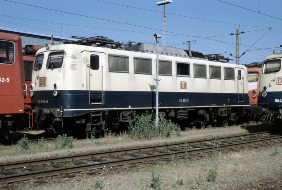 | Noch vor ihrer letzten Umbeheimatung und wenige Monate vor ihrer z-Stellung und Ausmusterung steht 140 588 am 18.06.2000 im Bw. Mannheim. | |