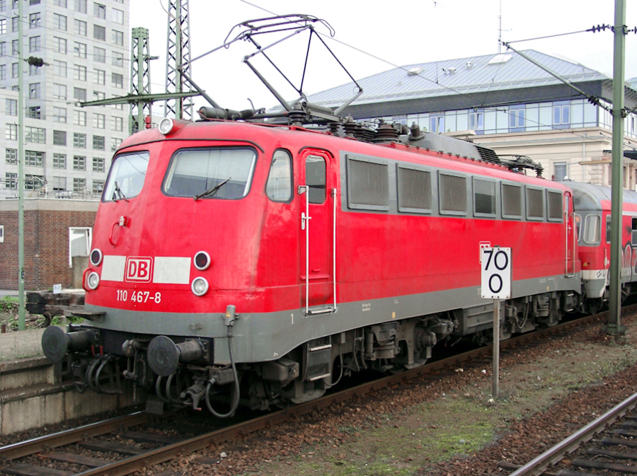 | Die Saarbrücker 110 467 steht mit einem Nahverkehrszug am 22.10.2002 auf Gleis 1 des Hbf. Mannheim. | |