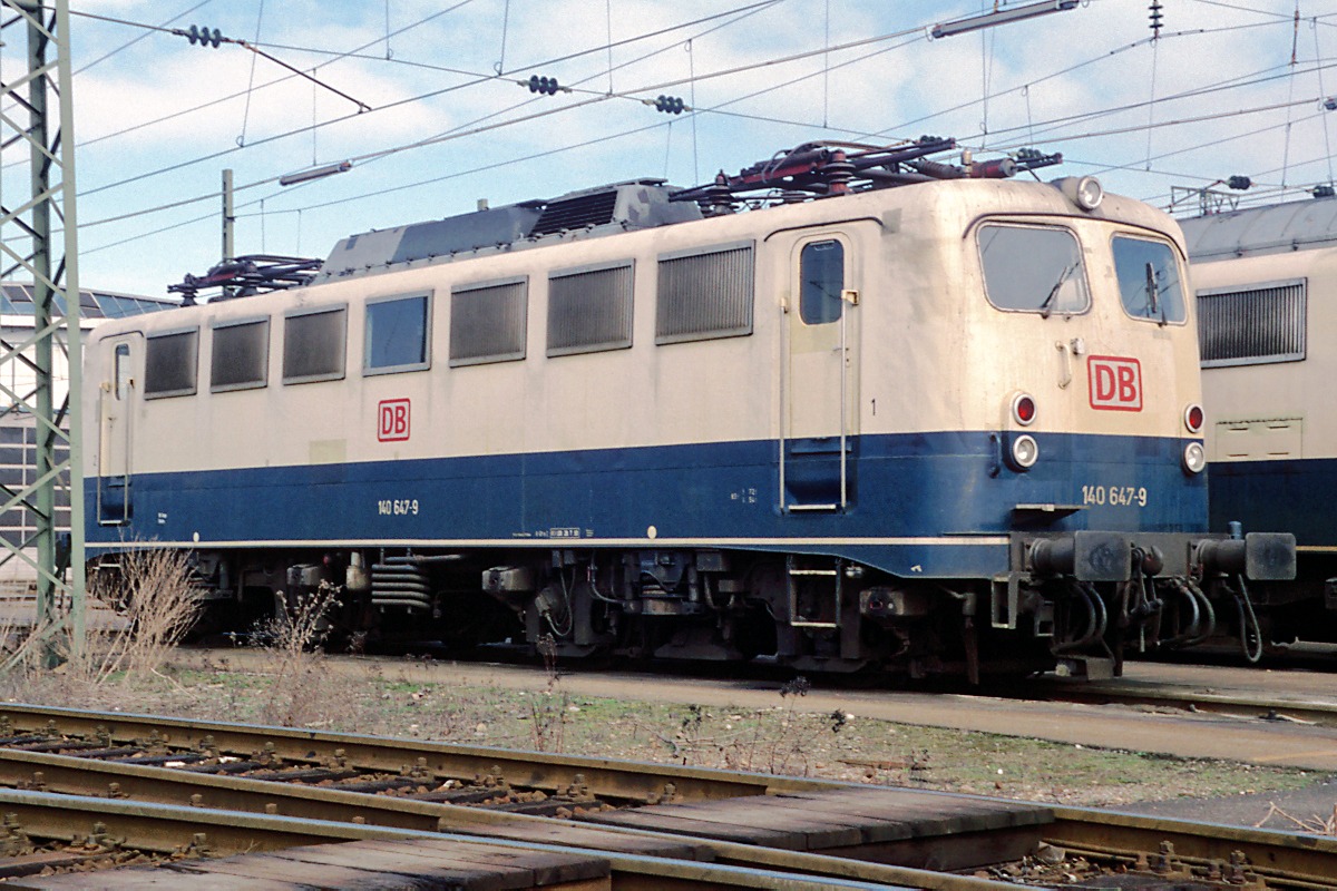 | Nur noch wenige Tage gehört die am 15.02.1998 im Bw. Mannheim fotografierte blau/beige 140 647 "offiziell" zum Bw. Seelze, aber bereits einen Monat später wurde sie dann endgültig nach Mannheim umbeheimatet. | |