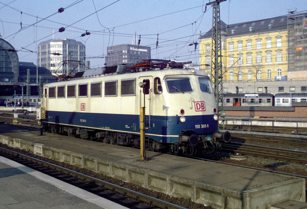 | Unweit ihres Heimat-Bw. Hamburg-Eidelstedt steht die blau/beige 110 368 am 20.03.1996 an einem Abstellgleis im Hbf. Hamburg. | |