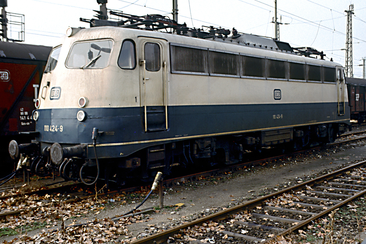 | Dort, wo sonst nur Güterzugloks anzutreffen waren, nämlich im Bw. Mannheim, stand am 09.02.1992 auch eine Bügelfalten-110er. | |