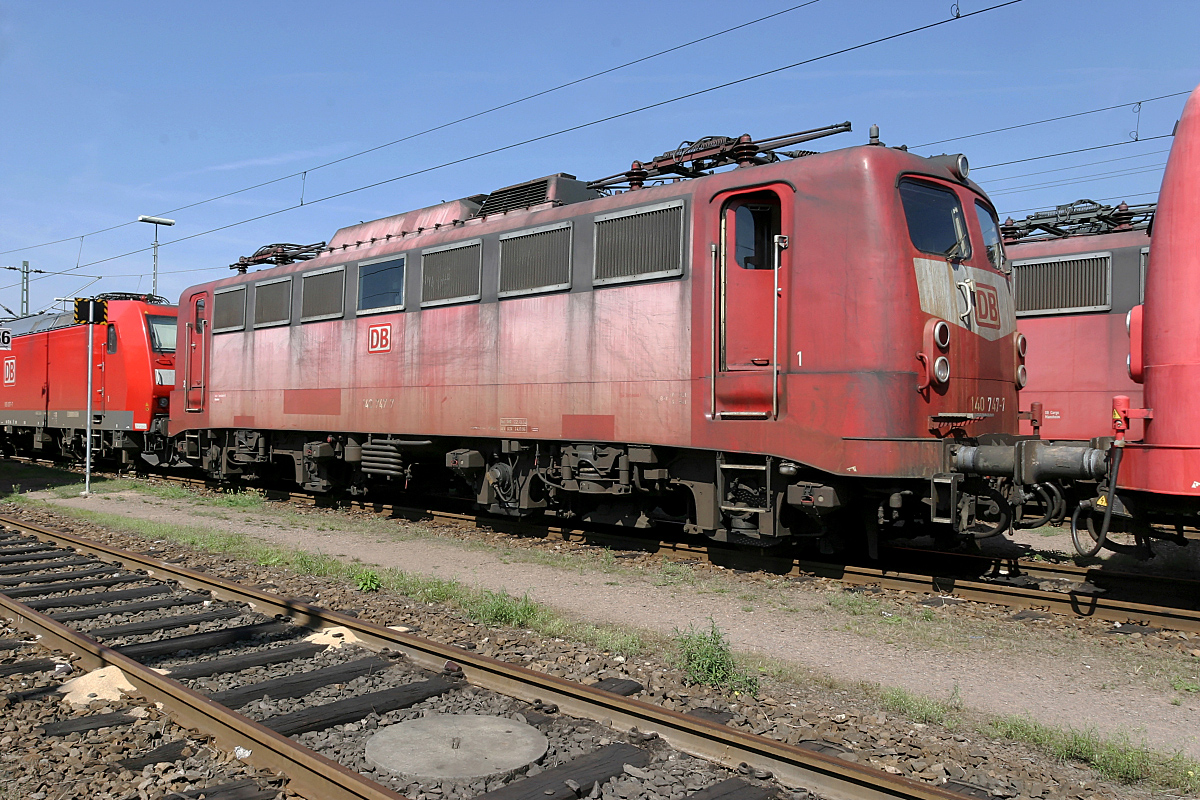 | Seit wenigen Tagen schon z-gestellt und noch im gleichen Jahr ausgemustert, konnte man die orientrote 140 747 am 05.09.2004 in ihrem Heimat-Bw. Mannheim antreffen. In ihren farblich "traurigen" Zustand wurde daher nicht mehr viel Farbe investiert. | |