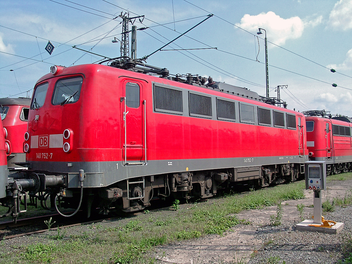 | Bei passendem Fotolicht und makelloser Lackierung sieht "verkehrsrot" an einer Lok doch recht gut aus - wie auf diese Aufnahme der in Köln-Gremberg stationierten 140 752 der DB Cargo AG am 29.05.2003 im Bw. Mannheim. | |
