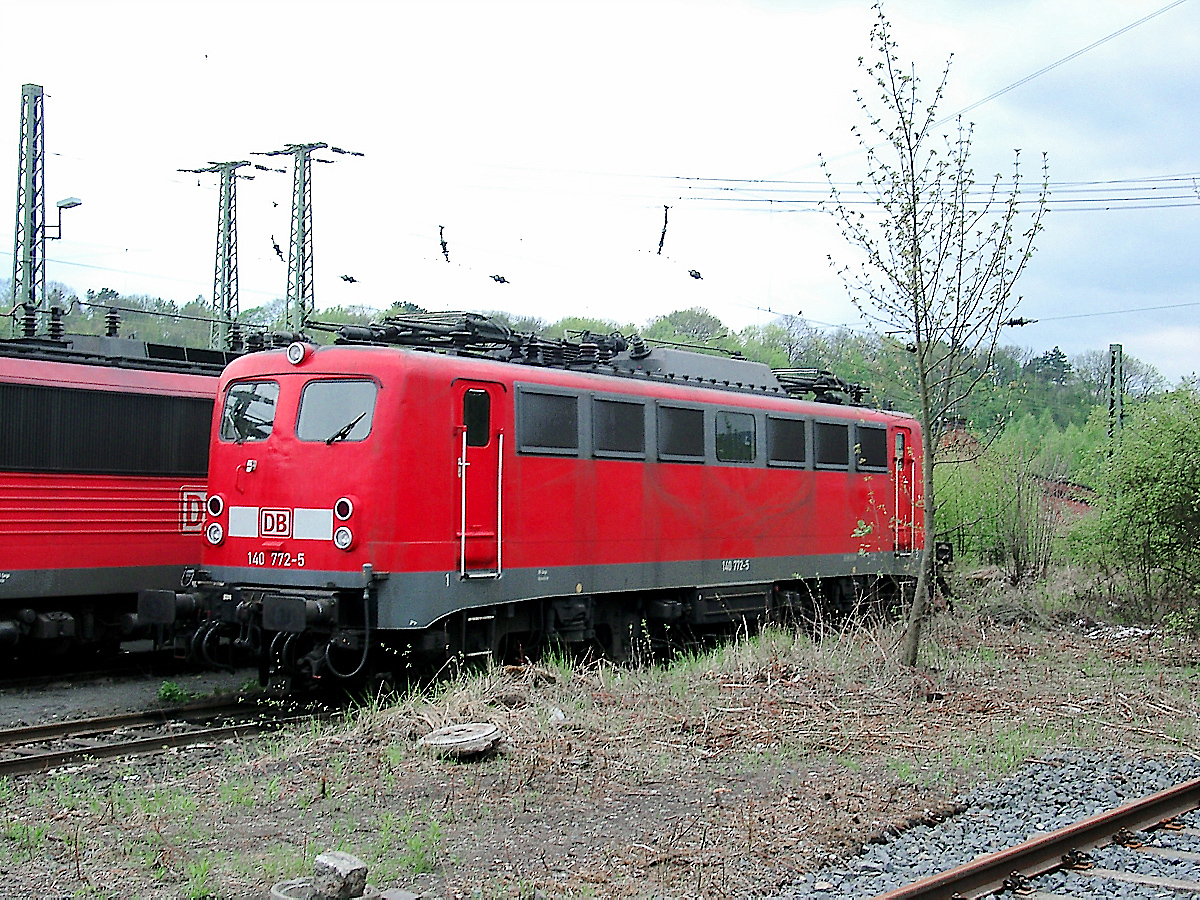| Noch gehörte die am 26.04.2003 in Kassel aufgenommene 140 772 der DB Cargo, aber in späteren Jahren sollte sie für RBH und EBS unterwegs sein. | |