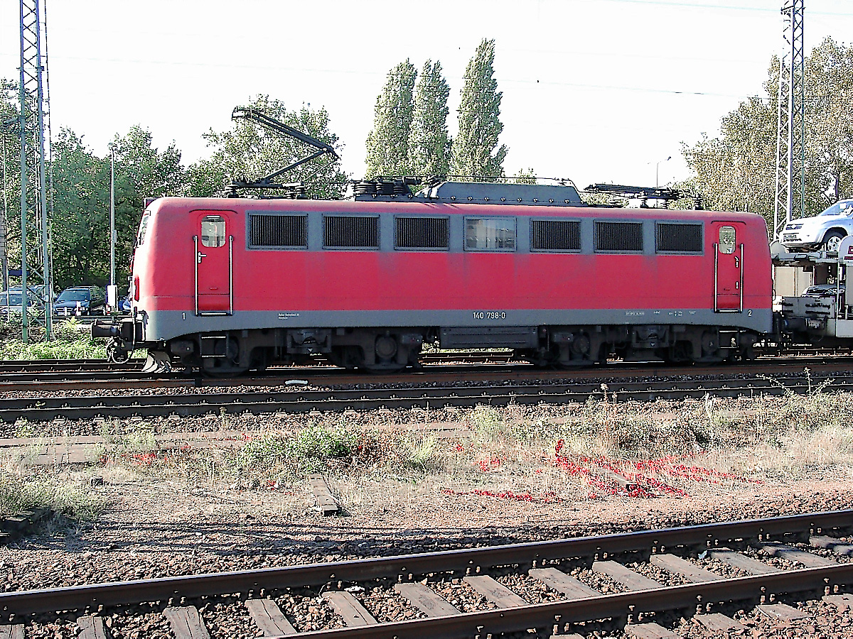 | Mit einem Autotransportzug ist die in Mannheim beheimatete 140 798 am 18.10.2005 in Höhe des Hbf. Mannheim unterwegs. | |