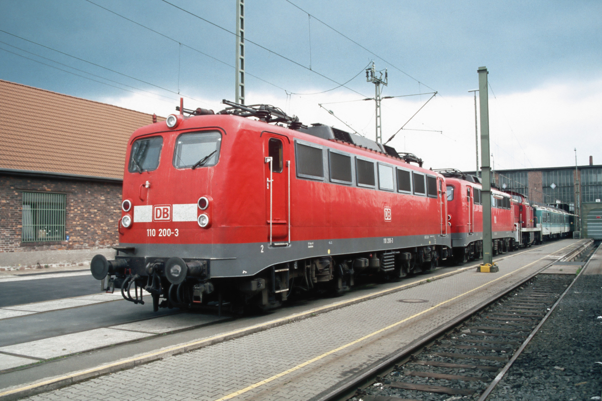 vor einer weiteren 110er und einer Lok der BR V 90 im Bw. Darmstadt.