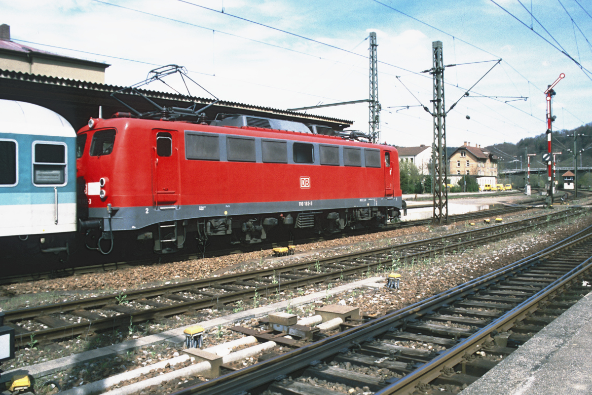 | Noch war der Bf. Horb am Neckar weitgehend mit Formsignalen ausgerüstet, als 110 182 am 21.04.2000 zur Abfahrt bereitstand. | |