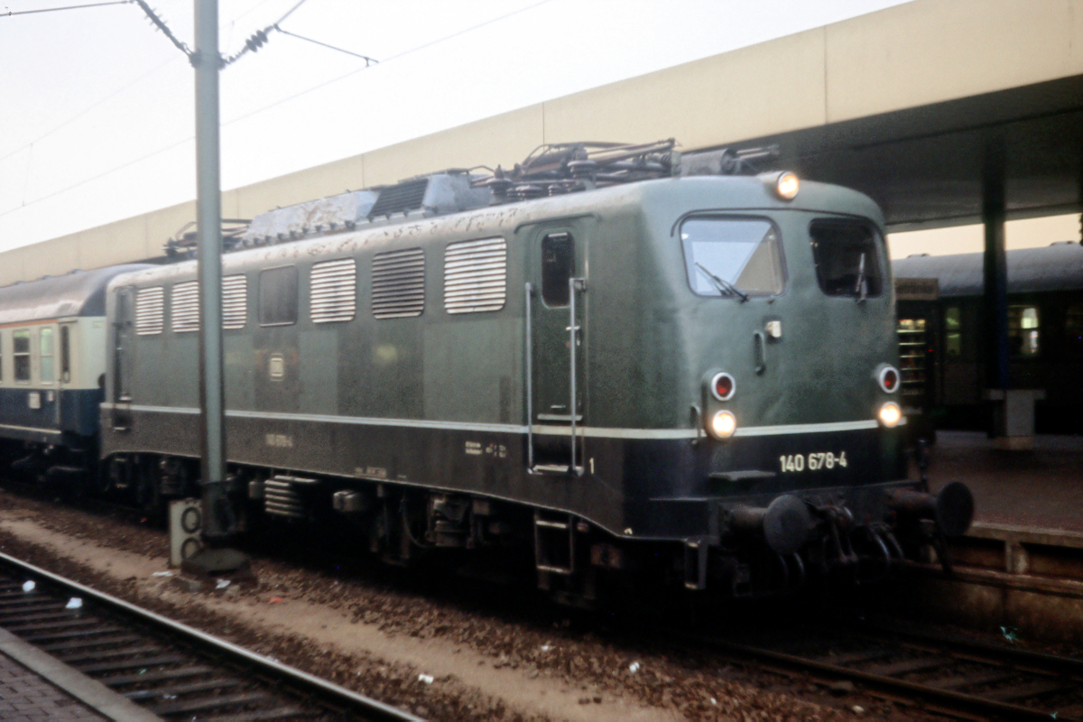 | Nur noch wenige Monate in ihrer ursprünglichen grünen Lackierung unterwegs: die in Mannheim stationierte 140 678 am 29.04.1991 im Hbf. Mannheim. | |