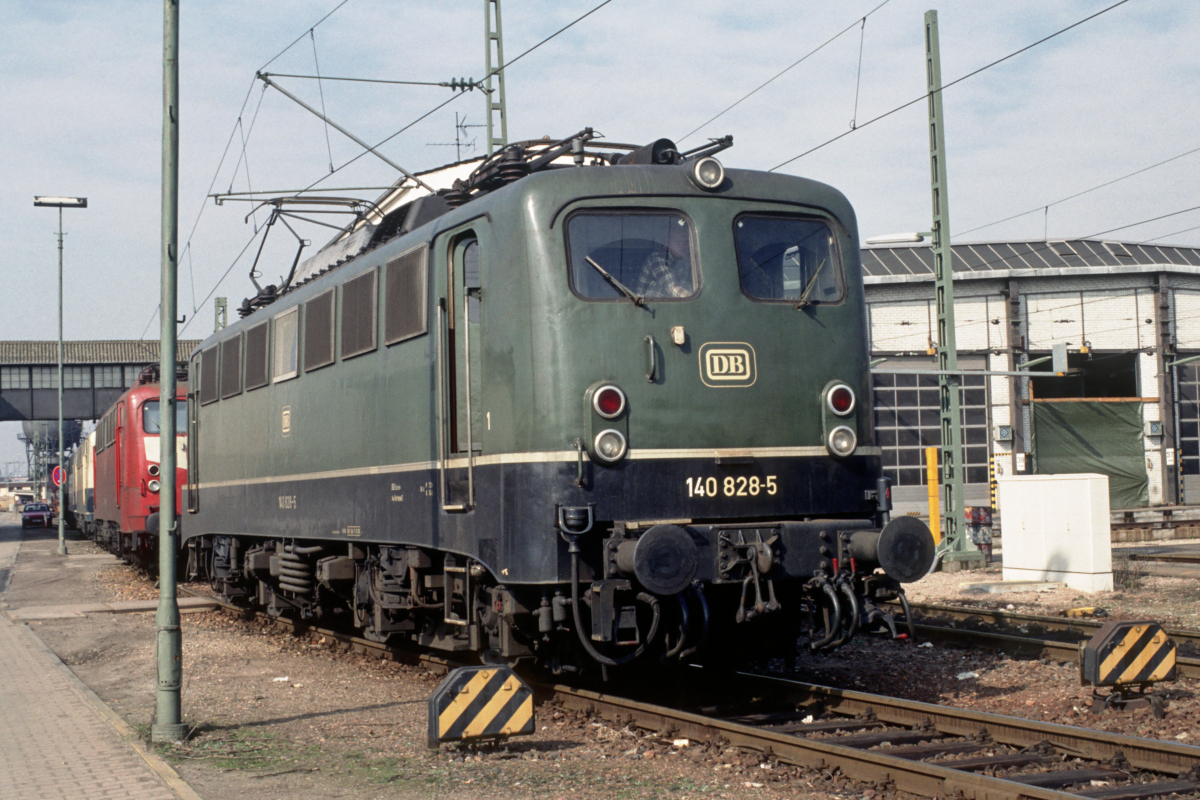 | Noch mehr als zehn Jahre wird die am 10.03.1991 im Bw. Mannheim fotografierte 140 828 ihre grüne Lackierung tragen dürfen, bevor sie endgültig verkehrsrot umlackiert wurde. | |