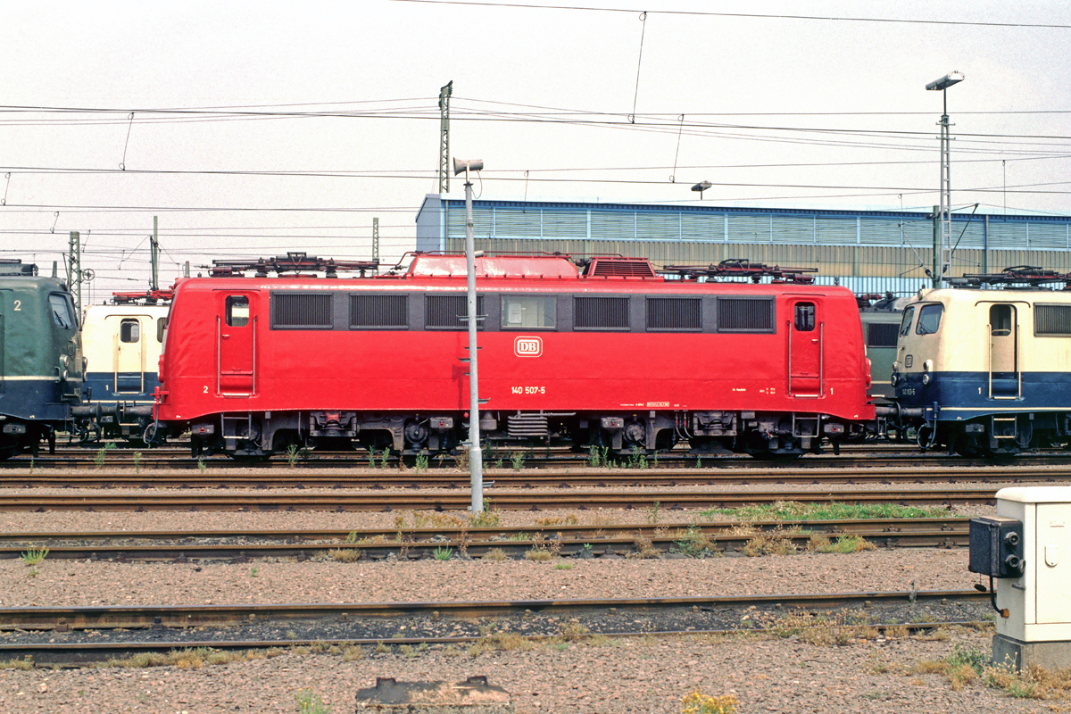 | Loks mit allen drei 1990 bei Güterzugloks der DB vertretenen Lackierungen - orientrot, blau/beige und grün - trafen sich am 05.08.1990 mit der 140 507 im Bw. Mannheim. | |