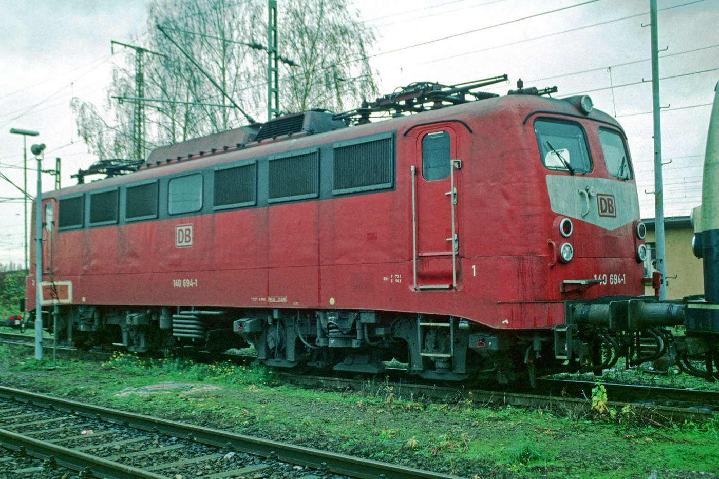 | Bis zu ihrer Ausmusterung und Zerlegung 2002 war 140 694 orientrot lackiert, hier aufgenommen am 26.11.2000 im Bw Mannheim. | |