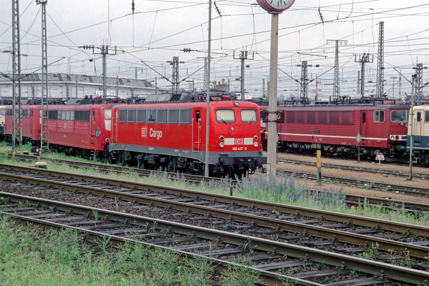 | Viele Farben, viele Baureihen - und mittendrin die verkehrsrote 140 437, aufgenommen am 15.06.1998 im Bw. Mannheim. | |