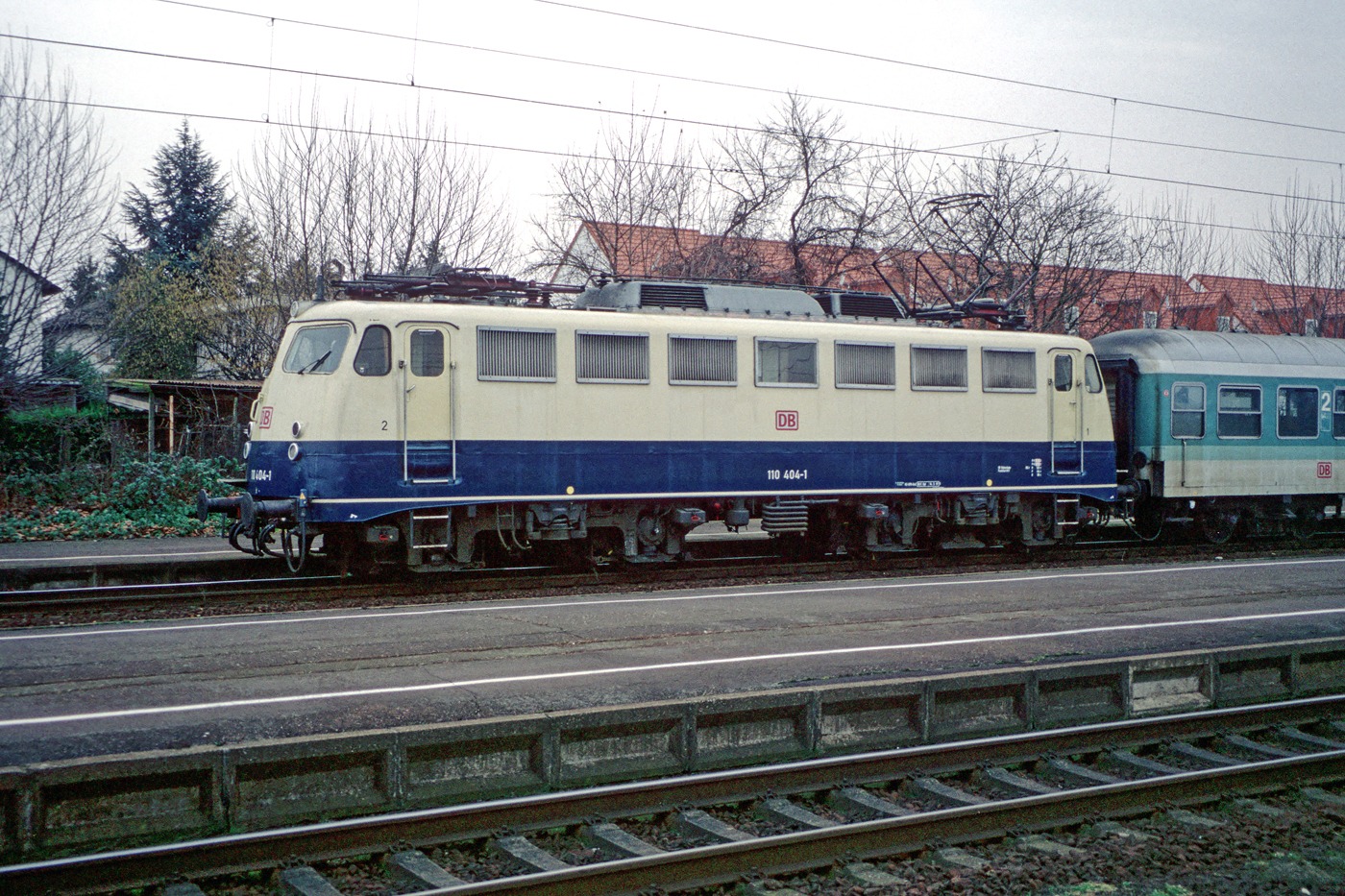 | 110 404 steht am 15.01.1998 mit einem Nahverkehrszug im Bf. Mannheim-Friedrichsfeld bereit zur Abfahrt nach Weinheim an der Bergstraße. | |