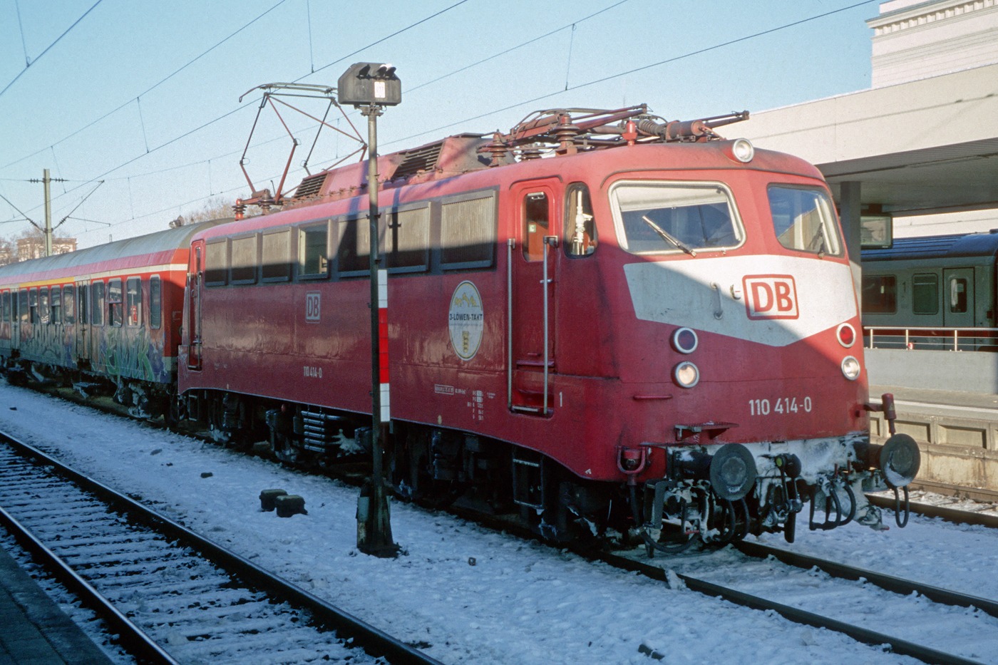 mit Aufkleber "3-Löwen-Takt" am 03.01.2002 im Hbf. Mannheim.
