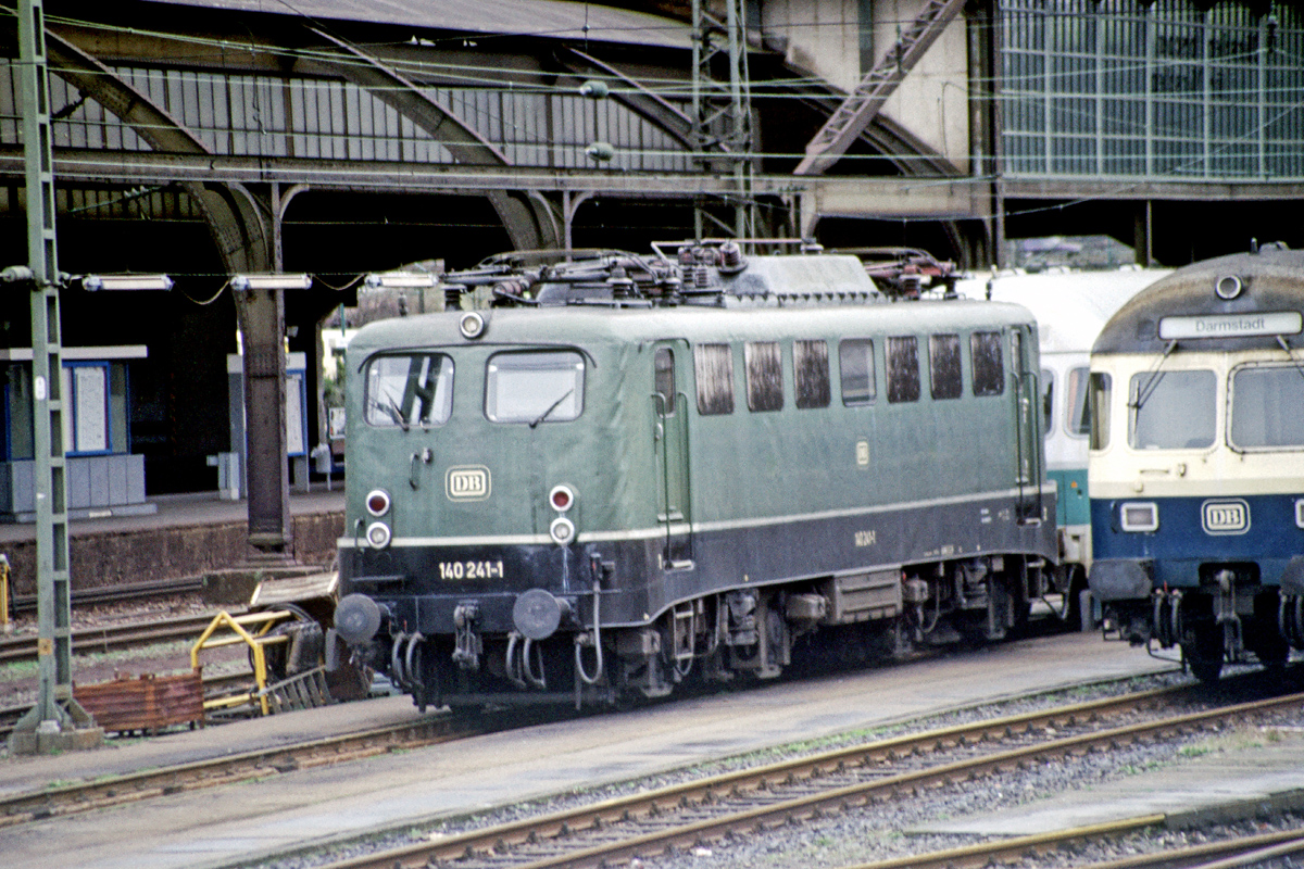 | 140 241 mit Nahverkehrsrzug am 13.03.1993 im Hbf. Darmstadt zur Abfahrt in Richtung Frankfurt. | |