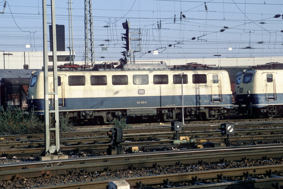 | 140 350 vom Bw. Köln-Deutzerfeld steht am Neujahrstag des Jahres 1993 am östlichen Bahnsteigeinde im Hbf. Mannheim. | |