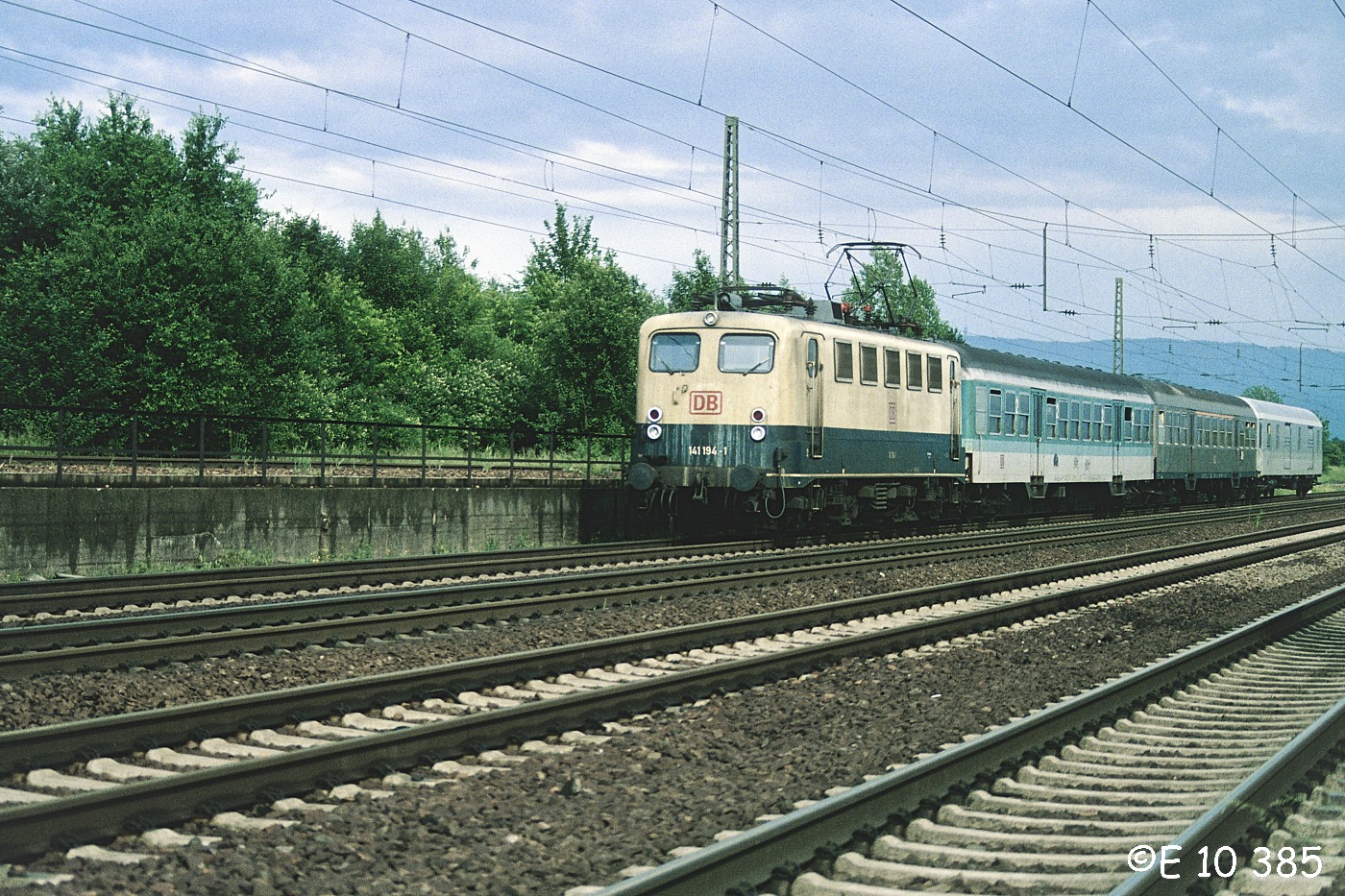 mit Nahverkehrszug am 04.06.1995 in Mannheim-Friedrichsfeld.