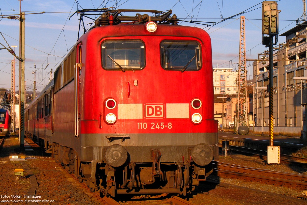 | Hatte extra in mein Lokführerkalender geschaut warum ich die 110 245 hatte. An dem Tag hatte 111 153 auf der Fahrt nach Siegen ausgehaucht und so wurde die Kölner 110 245 an dem Tag als Ersatz genommen. Hier wurde der Zug nach der Leistung aus Köln wieder abgestellt. | |