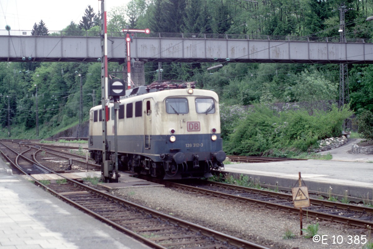in blau/beige mit Flügelsignalen am 22.05.1996 im Bf. Bechtesgaden.