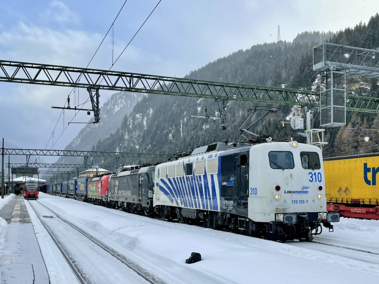 | Am 05.02.2022 war man bei Lokomotion froh dass am Brenner noch als Ersatzlok 139 310 stand, als 193 700 Probleme mim Deutschen Stromabnehmer hatte. |