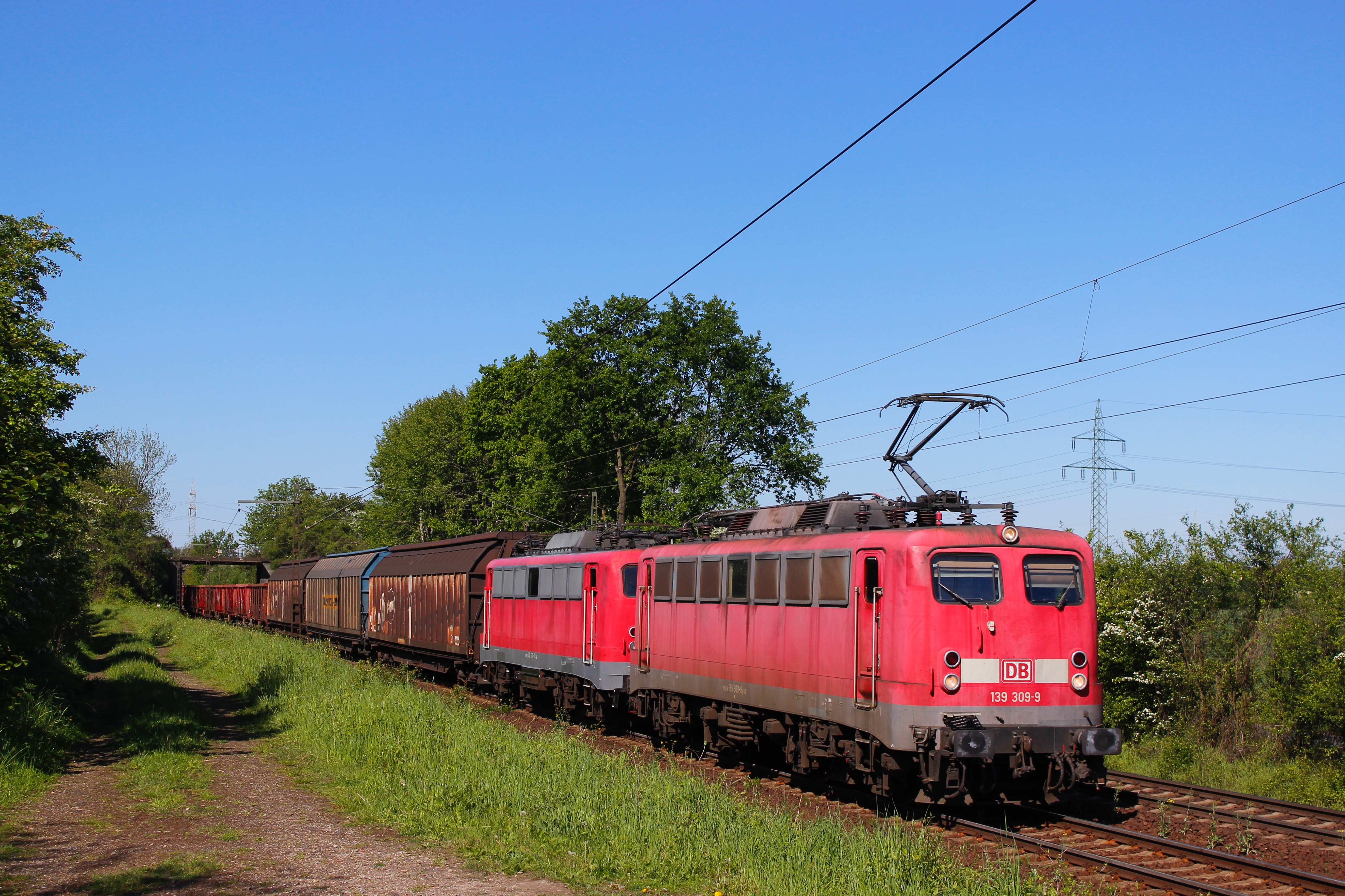 durchfuhr am 03.05.2014 Ahlten mit einem gemischten Güterzug. Im Schlepp lief ihre Schwesterlok