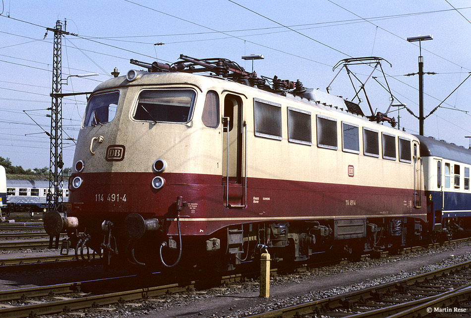 Zum 1.1.1988 wurde die 112 491 in 114 491 ungezeichnet. Am 6.8.1991 war die Hamburger 114 491 in Köln Deutzerfeld zu Besuch.