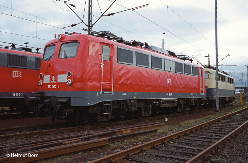 , im gewöhnungsbedürftigen, verkehrsroten Anstrich abgelichtet. Am 18.04.1998 stand die Lok im BW Köln-Deutzerfeld.