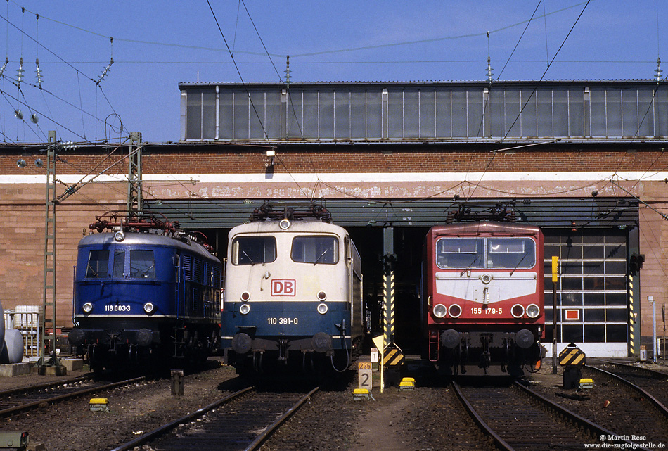 Treffen der Generationen und der Farbschemen. Im Bw Frankfurt/Main geben sich die 118 003,