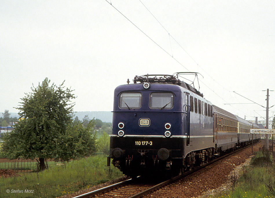 mit dem D383 (Bayreuth - Chiasso) am 24.5.1987 bei Gärtringen.