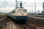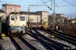 141 410 verlässt am 12.05.1991 den Hbf. Mannheim in Richtung der östlichen Abstellgruppe.