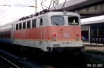 "Guad schaut's aus", die grau/orange/rote 141 440 mit einem Nahverkehrszug am 03.04.1988 im Hbf. Nürnberg.
